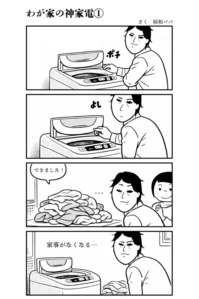 わが家でいちばん偉いのは、全自動洗濯機だ。